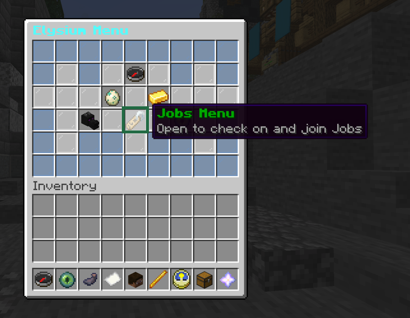 Clicking on the nametag in the Elysium menu will open up the jobs menu.